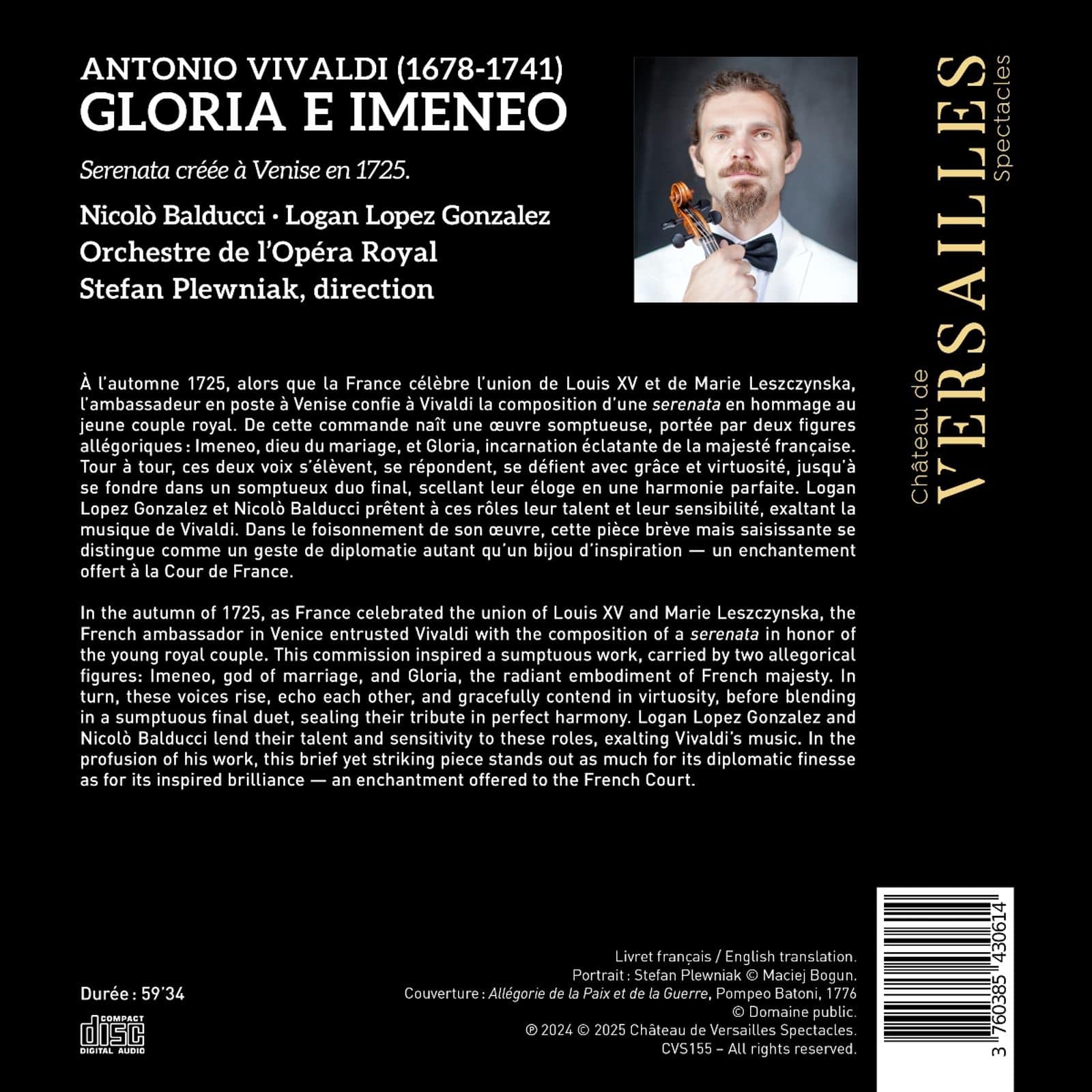 In de herfst van 1725, toen Frankrijk het huwelijk vierde van Louis XV met Marie Leszczynska, gaf de Franse ambassadeur in Venetië Vivaldi de opdracht om een serenata te componeren ter ere van het jonge koninklijke paar. Deze gelegenheid leidde tot een prachtig werk, gedragen door twee allegorische figuren: Imeneo, de god van het huwelijk, en Gloria, de stralende belichaming van de Franse grandeur. De twee verheffen afwisselend hun stem, beantwoorden elkaar, wedijveren sierlijk in virtuositeit – en verenigen uiteindelijk in een glorieus slotduet dat hun eerbetoon in perfecte harmonie bezegelt. Logan Lopez Gonzalez en Nicolo Balducci geven deze rollen met elegantie en subtiliteit uitdrukking en laten Vivaldi’s muziek stralen. In de rijkdom van zijn oeuvre valt dit korte maar indrukwekkende werk op door zijn diplomatieke finesse en geïnspireerde brille – een werkelijk briljant muzikaal geschenk aan het Franse hof.