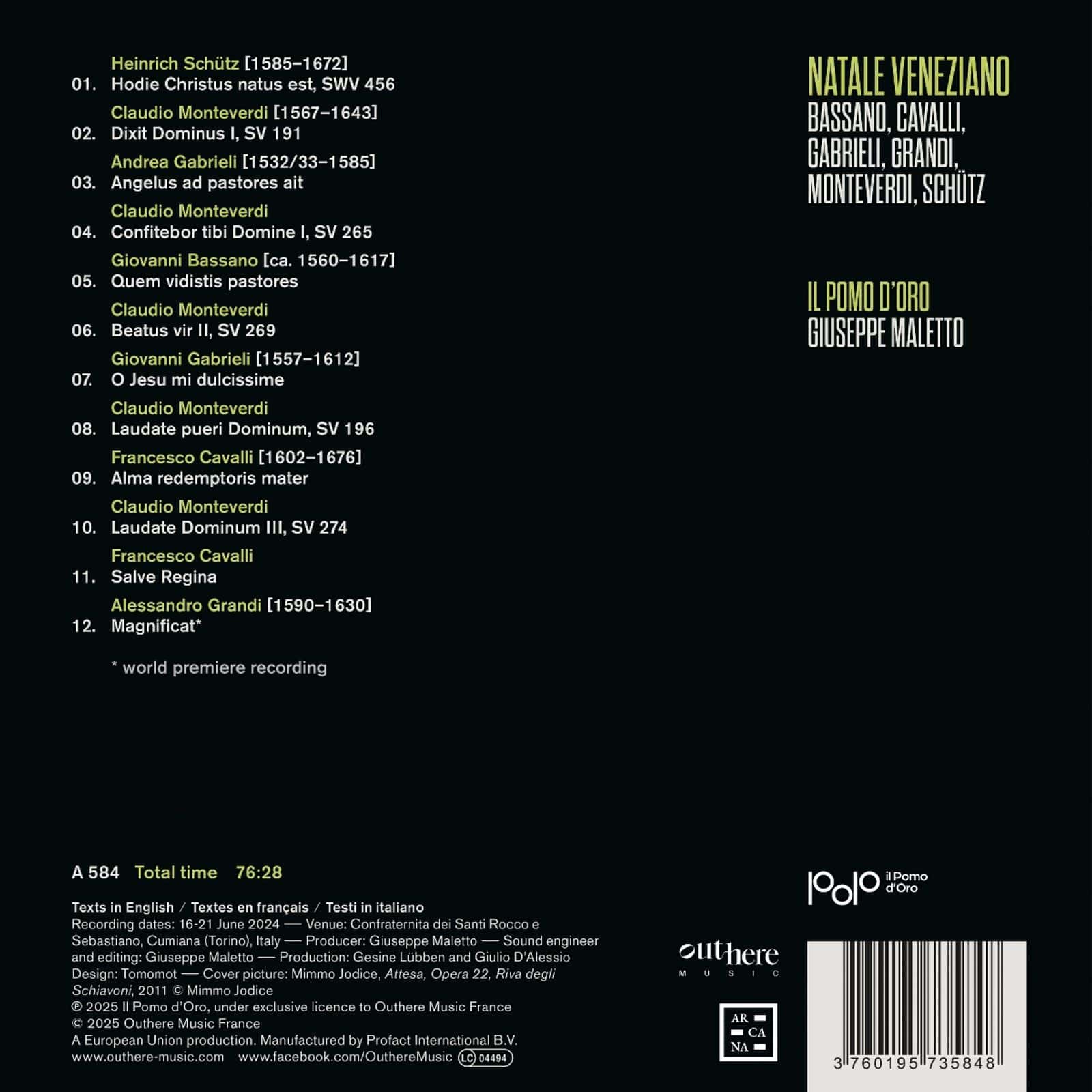 Na drie succesvolle albums met Arcana, luidt “Natale veneziano” de nieuwe bundel Il Pomo d’Oro in . De hoofdrolspeler van deze opname is het koor Pomo d’Oro, dat sinds 2021 de activiteiten van het orkest begeleidt onder leiding van specialist Giuseppe Maletto.
