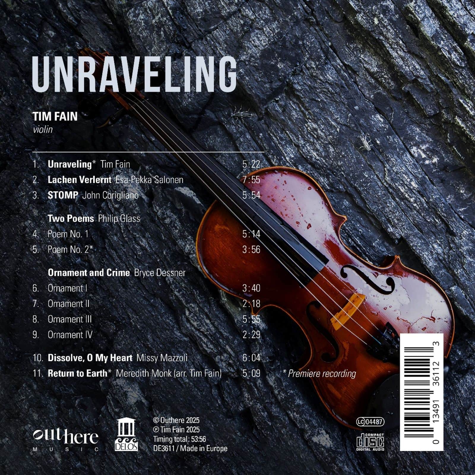 Delos is verheugd om de Avery Fisher Career Grant-winnende violist en componist Tim Fain te verwelkomen. Tim Fain loopt voorop in de muziekwereld en heeft grensverleggende projecten geproduceerd in samenwerking met onder andere Google, Samsung, Facebook, BBC en TEDx. Hij is ook te horen op de soundtracks van veel geprezen films, waaronder “Black Swan”, “12 Years a Slave” en “Don’t Look Up”. Unravelling, zijn eerste album voor Delos, werd gecreëerd in een tijd van grote onzekerheid. Tegen een achtergrond van crisis en politieke onrust en de toenemende mentale en gezondheidsproblemen van jonge mensen, is deze verzameling werken geen capitulatie voor wanhoop, maar een zoektocht naar betekenis, veerkracht en hoop. Met krachtige werken van John Corigliano, Bryce Dessner, Esa-Pekka Salonen, Philip Glass en Meredith Monk – naast Tims eigen zeer persoonlijke compositie Unravelling – is dit album een reis door de stadia van verval en vernieuwing.