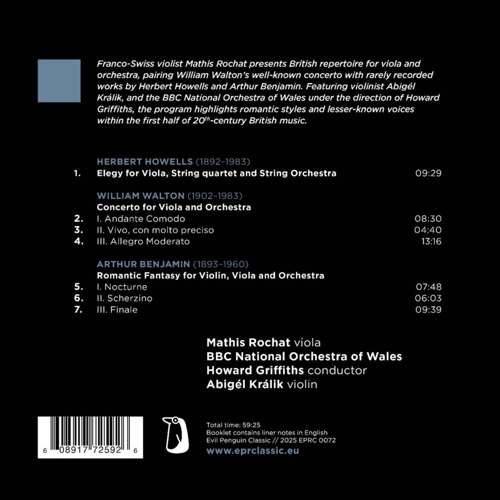 De Frans-Zwitserse altviolist Mathis Rochat presenteert Brits repertoire voor altviool en orkest, waarbij hij William Waltons beroemde concert combineert met zelden opgenomen stukken van Herbert Howells en Arthur Benjamin. Met de Hongaars-Nicaraguaans-Amerikaanse violiste Abigél Králik en het BBC National Orchestra of Wales onder leiding van Howard Griffiths, verkent het programma stijlen en minder bekende vertegenwoordigers van de Britse muziek uit de eerste helft van de 20e eeuw.