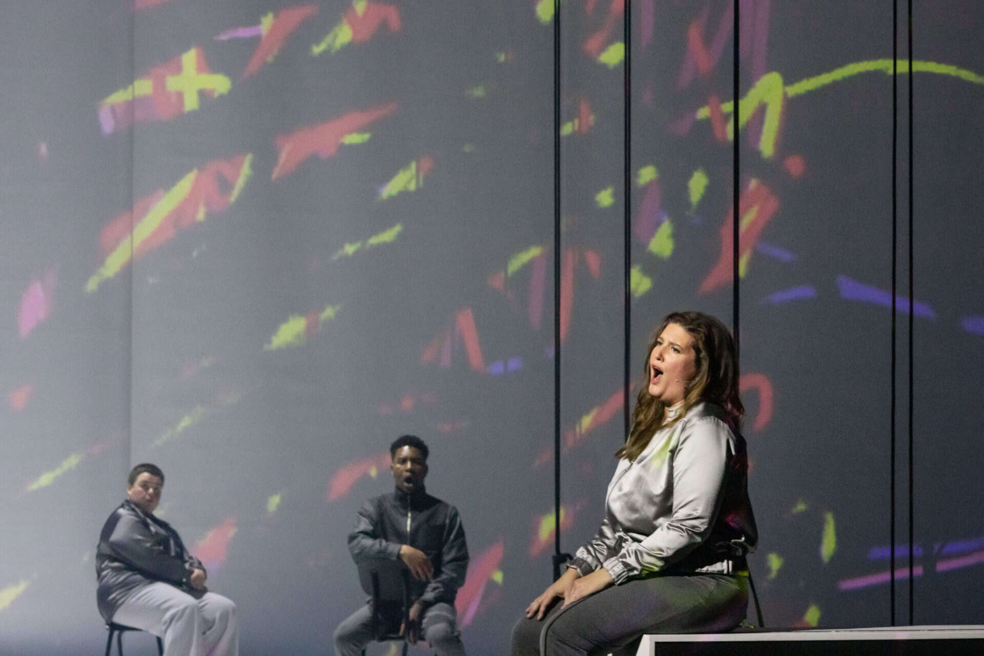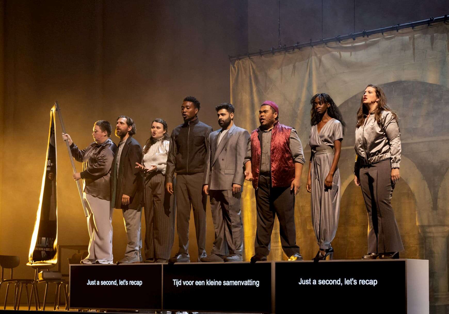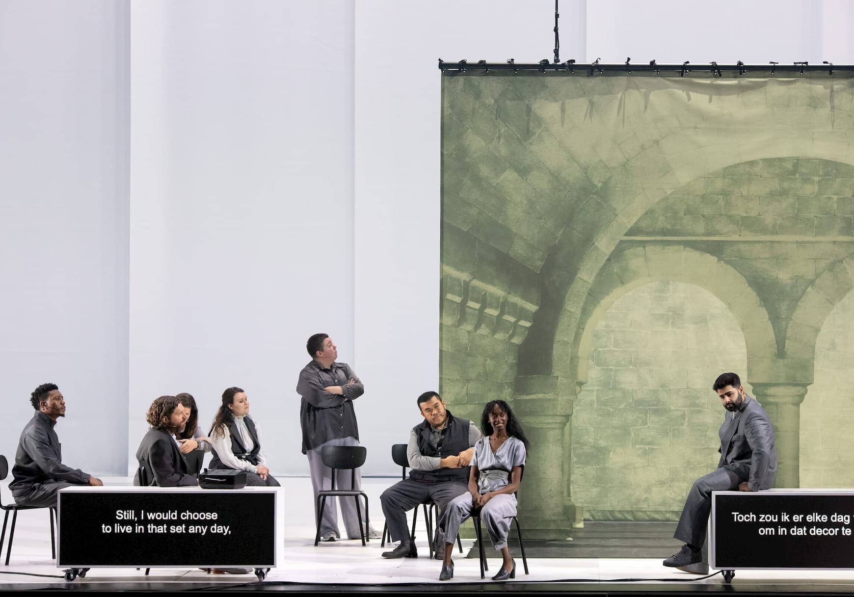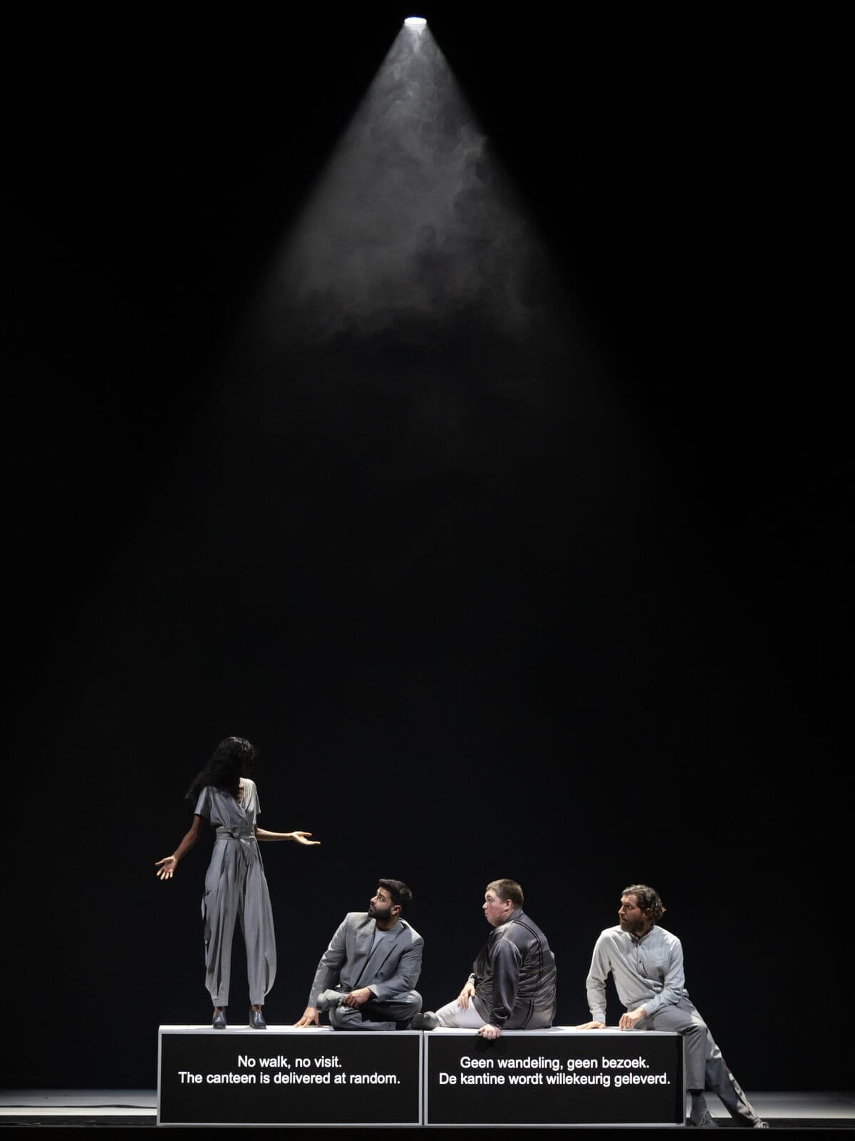 Vier acteurs en vier zangers. Wat een stemmen! Je zou zeggen dat, als ze er niet geweest waren, ze speciaal voor deze opera gemaakt werden. Het werden vier ontdekkingen voor mij – als je enkele jaren geen opera meer recenseert leer je nieuwe mensen kennen – die sterk overtuigden in de vertolking op zich, in de muzikaliteit, in de tekstuele inleving en het lijden individueel en in de groep, in de verwarring, in de onzekerheid, in het niet-weten-wat-en-wanneer-waarheen. De namen op een rij: bewuste sopraan Katharina Dain, benadrukkende bas-bariton Maurel Endong, droevige tenor Nattha Thammathi en ontroerende mezzosopraan Lotte Verstaen. Dit alles in zeer goede banen geleid door een perfect musicerend Symfonisch Orkest Opera Ballet Vlaanderen met aan het hoofd van dit alles dirigente Zoe Zeniodi.