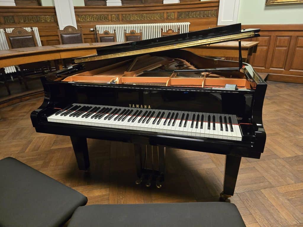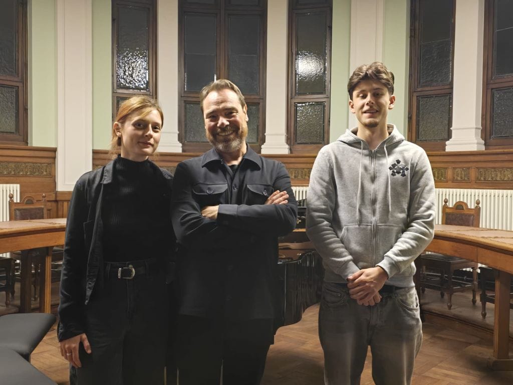 In het tweede stuk zaten ze wel netjes naast mekaar, zoals het traditioneel hoort te zijn. De basnoten waren deze keer met een soort kneedgom afgedekt, geprepareerd dus, wat resulteerde in een bijzondere holle, bijna percussieve klank maar wel nog tonaal herkenbaar. Het handelsmerk van Frederik, zowel bij improvisatie als in zijn composities, is de Beethooveniaanse thematische doorwerking: een motief of idee wordt consequent voortgezet, alle mogelijkheden worden afgetast en uitgewerkt en hij gaat pas door met een nieuw element wanneer het materiaal is “opgebruikt”. Zo krijgen we een gefundeerde spanningsboog te horen waarin de luisteraar motieven blijft herkennen, maar telkens in een andere context wordt ondergedompeld. Op het einde was een mooi basmotief te horen, bijna filmisch repetitief, waarop werd geïmproviseerd.